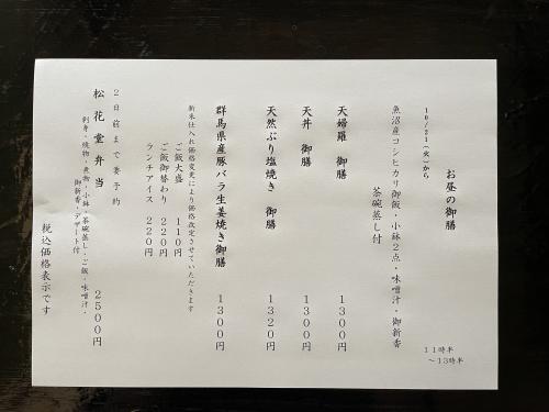 10/21(火)からのお昼の御膳 10/21(火)からのお昼の御膳 (魚沼産こしひかり・小鉢・御新香・お味噌汁・茶碗蒸し付) 天婦羅御膳 天丼御膳 天然ぶり塩焼き御膳 群馬県産豚バラ生姜焼き御膳 でございます。 よろしくお願いいたします 週替わりランチ 2025年10月20日 13時17分