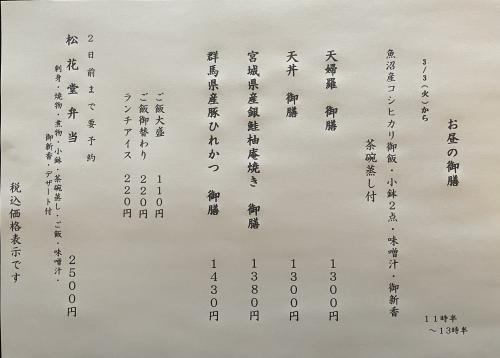 3/3(火)からのお昼の御膳 3/3(火)からのお昼の御膳 (魚沼産こしひかり・小鉢・御新香・お味噌汁・茶碗蒸し付) 天婦羅御膳 天丼御膳 宮城県産銀鮭柚庵焼き御膳 群馬県産豚ひれかつ御膳 よろしくお願いいたします。 週替わりランチ 2026年03月02日 16時40分
