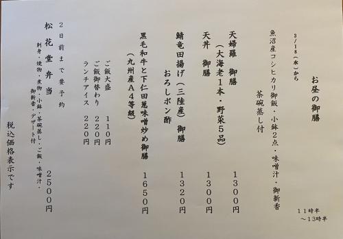 3/18(水)からのお昼の御膳